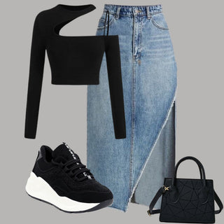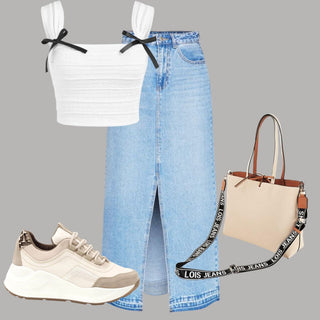 La falda de jean larga o denim y los tenis son prendas cómodas que te permiten moverte con facilidad y sin restricciones 🏃🏻♀️. Al combinarlos, obtendrás un look cómodo y a la moda al mismo tiempo. 🥰