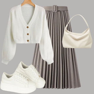 3. Outfit falda plisada con tenis: