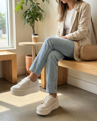 Los tenis Blancos con Plataforma son diseñados para mujeres modernas y con estilo. Son el complemento perfecto para cualquier outfit.